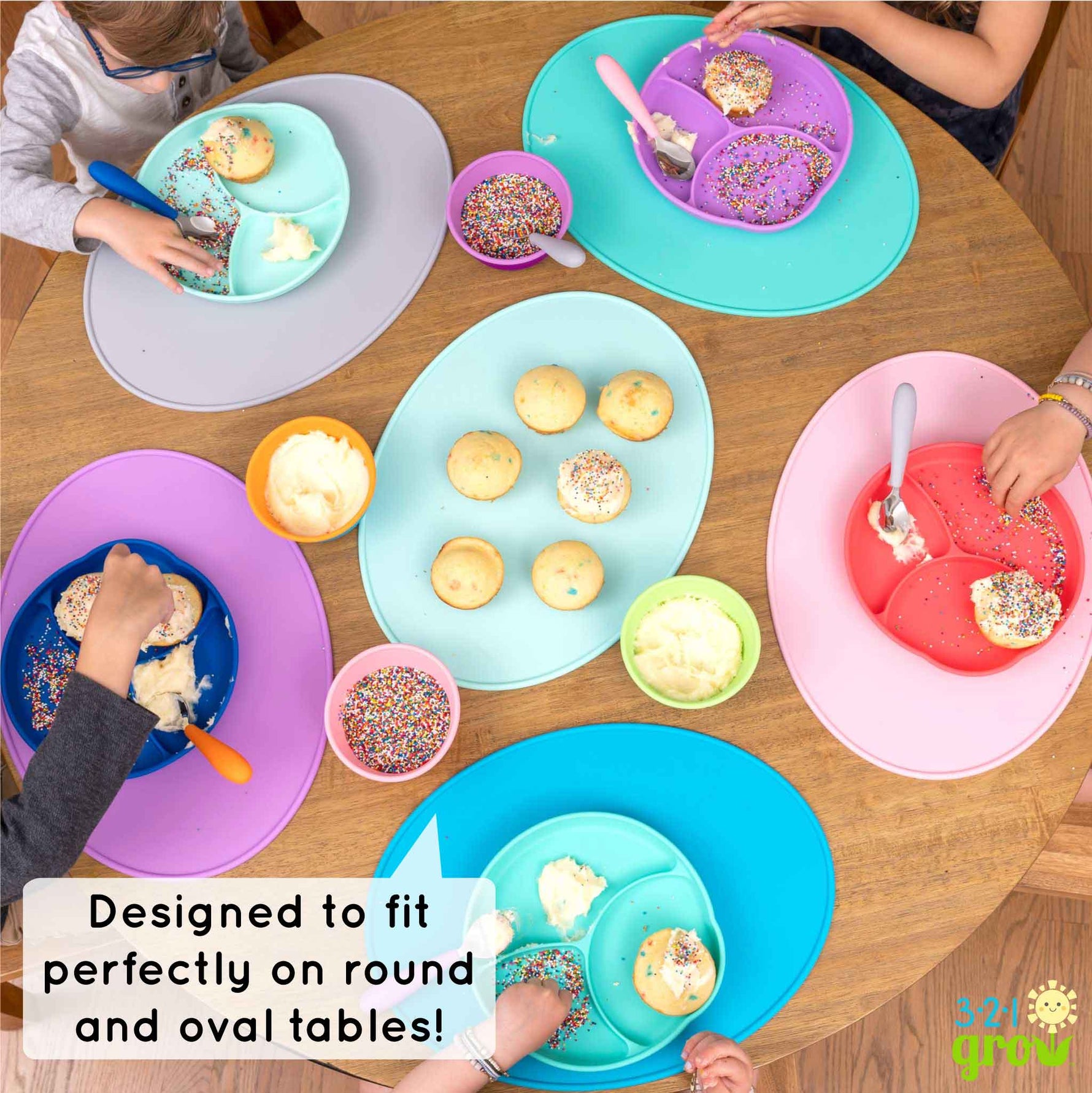 Introducing a practical solution for mealtimes, these oval-shaped silicone placemats are tailored to fit seamlessly on round tables.