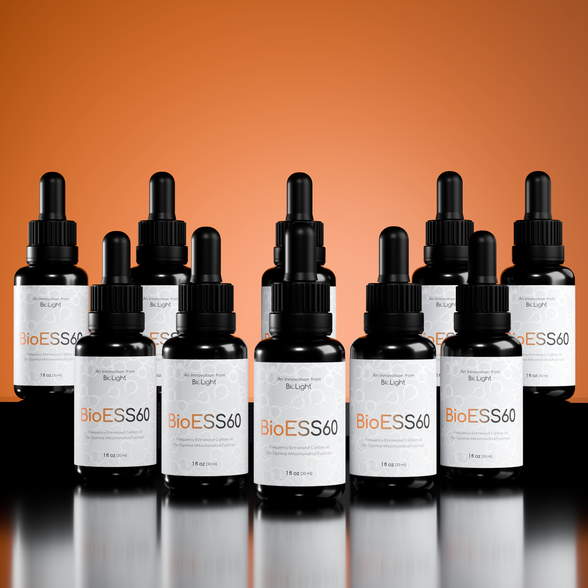 BioESS60 is our frequency-enhanced version of ESS60 (which is the highest quality of C60 for human consumption in the world; 99.99% ultra-high purity and solvent free) that is mixed in olive oil and astaxanthin oil. Per BioLight's unparalleled standard for quality products and supplements, both the olive oil and astaxanthin oil are also the highest-quality ingredients in the world (further discussed below).