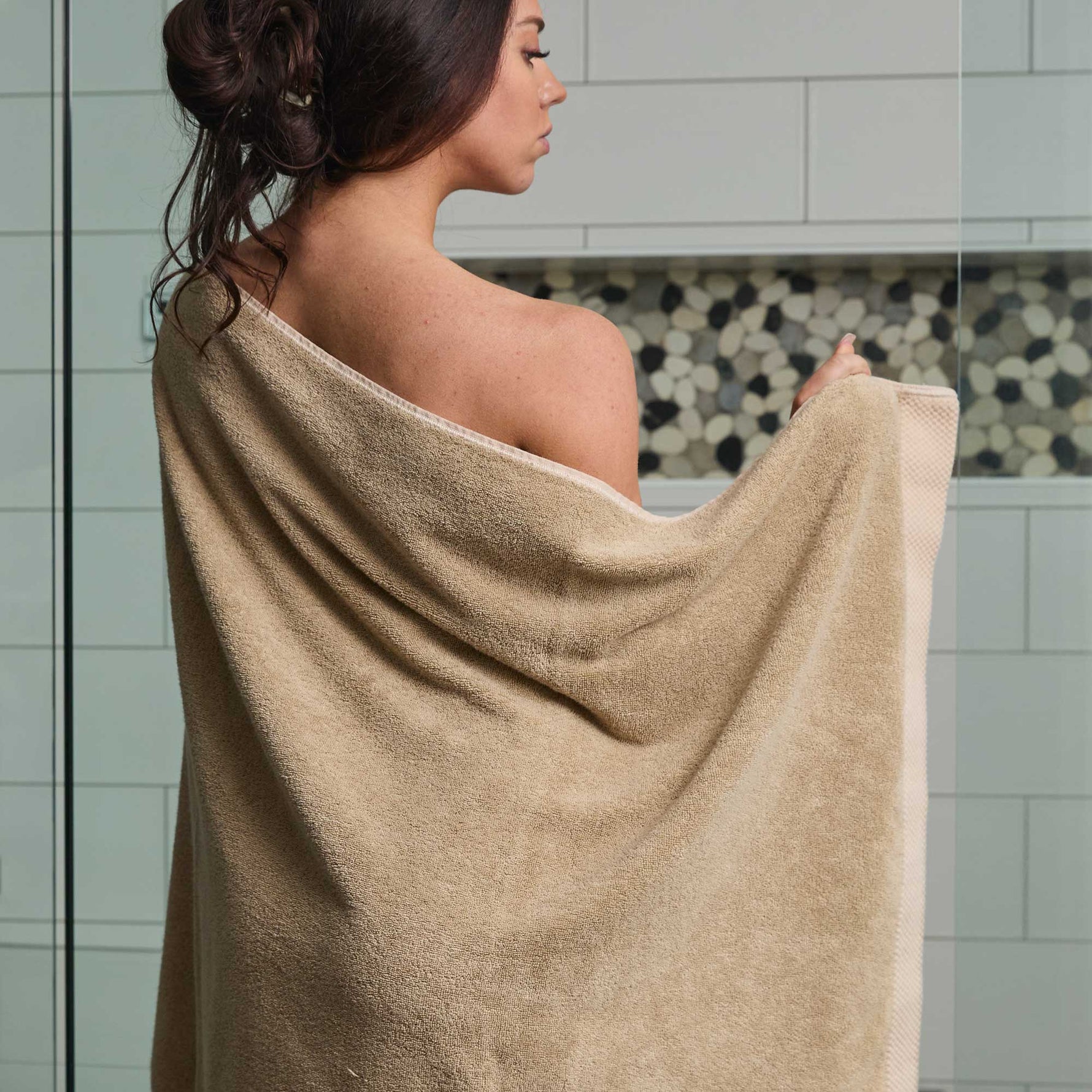 The mood evoked by Champagne colored bath towels is one of comfort and relaxation with a touch of opulence. Bamboo has natural UV resistant qualities making the towels versatile for bath, beach, or pool time.