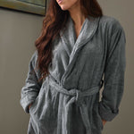 Charcoal Bath Robes envelop you in a deep, elegant shade of indulgent dark-gray with soft black undertones that exude modern sophistication and timeless calm to elevate your morning routine.