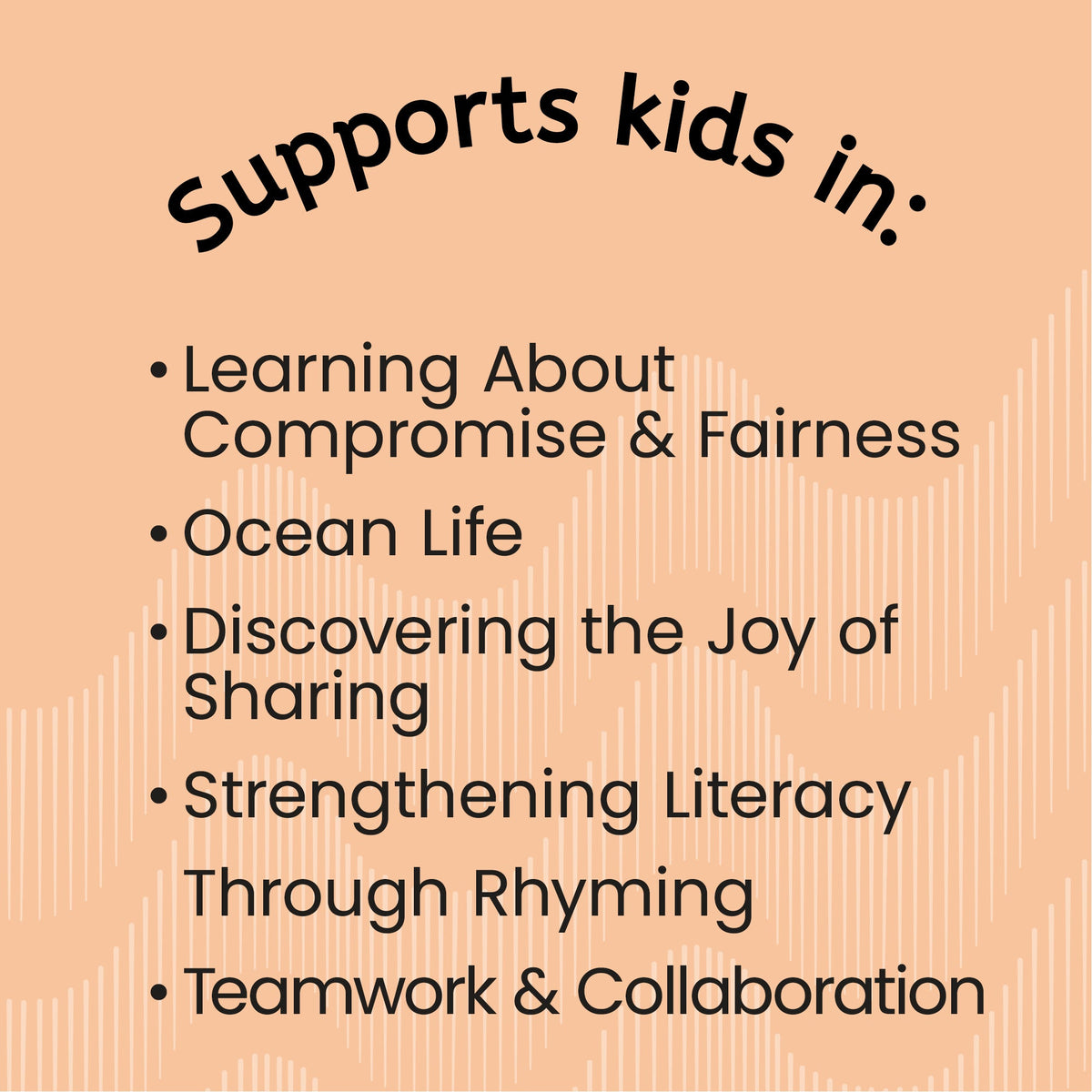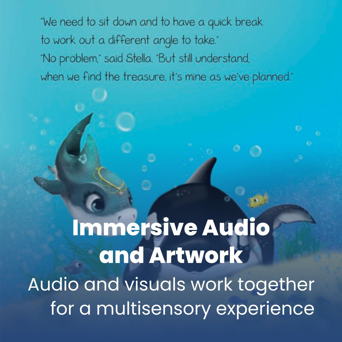 Stella the Shark has a big collection of trinkets and treasures. One day, she teams up with an orca and an octopus to locate the "Rose of the Sea." When they find the jewels in an old shipwreck, Stella must make a choice: keep them all for herself or share them with all the creatures in the ocean.
