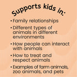 From exploring the farm to visiting the zoo, there's a world of animals to discover when Tex & Indi are on the scene! Your child will enjoy adventures with Tex & Indi and their sister Arizona, while exploring themes like understanding animals, compassion, and spending quality time with family and pets. Whether it's a rainy-day drawing animals indoors or a family trip to the animal shelter to rescue a kitten, “Tex & Indi: All Types of Animals” provides engaging and educational stories for your child!