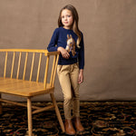 She'll be the epitome of equestrian chic in our adorable intarsia sweater in soft organic cotton. Features faux suede elbow patches, faux leather buttons at the shoulder placket, and a sophisticated horse design that pairs perfectly with our line of riding pants and skirts.