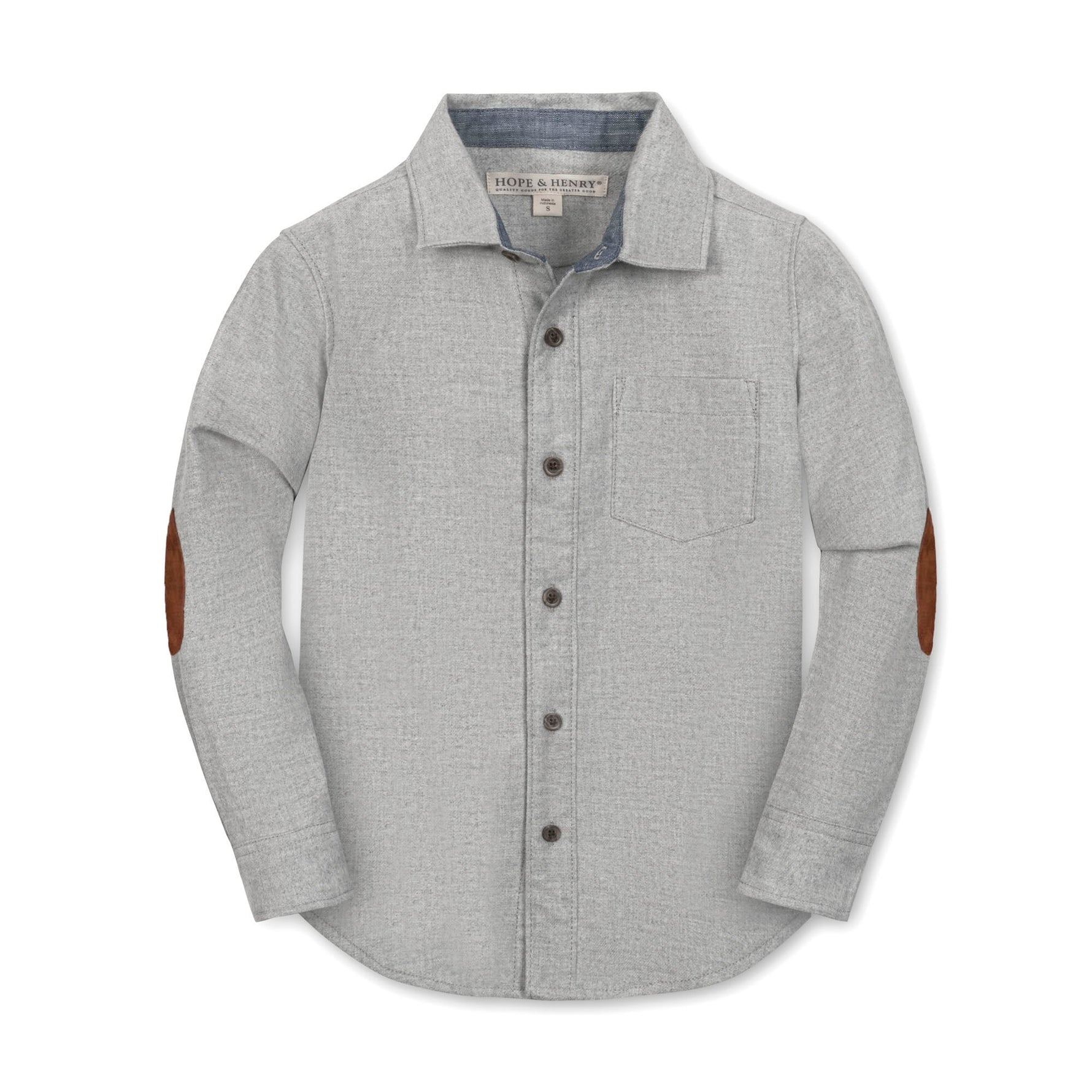 Our flannel button down shirts are crafted from soft organic cotton and sure to be a cool weather staple in your boy's wardrobe. Features sueded fabric on both sides for a soft and lofty finish that resists pilling and ensures a long life to be worn, loved, and passed down. Features faux suede elbow patches.