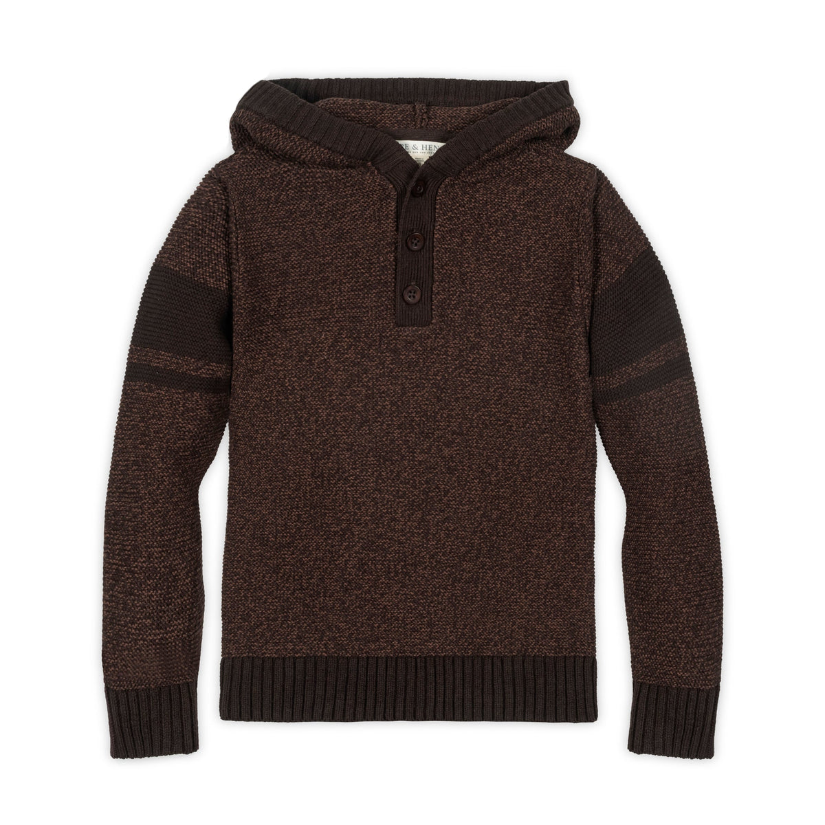 Perfect for pairing with sweats, jeans, or shorts, our athletic-inspired sweater hoodie is sure to become a well-loved layering piece for your guy. Crafted from soft organic cotton, this fall staple features a cozy hood, henley button placket, and sporty sleeve stripes. Rib knit at cuffs and hem for a comfortable fit.