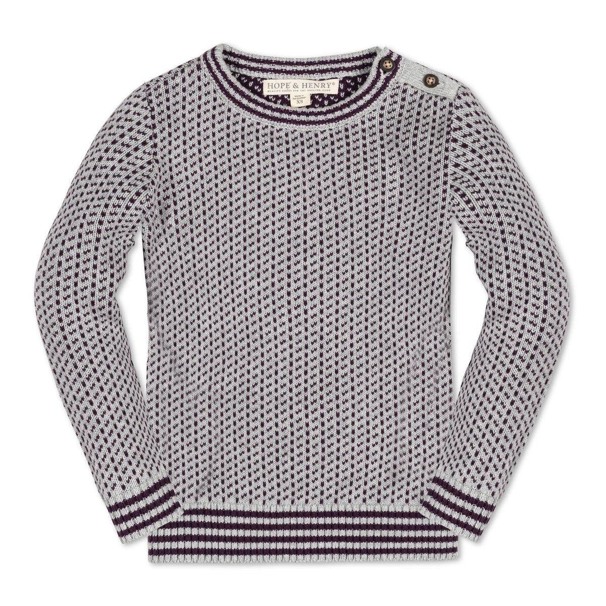 Our stylish crew neck pullover sweater is crafted in soft organic cotton that will keep your boy warm all season long. Features a beautiful intarsia design, rib knit trim at the cuffs and collar, and buttons at the shoulder placket. Pairs perfectly with our collection of organic cotton button downs and pants.
