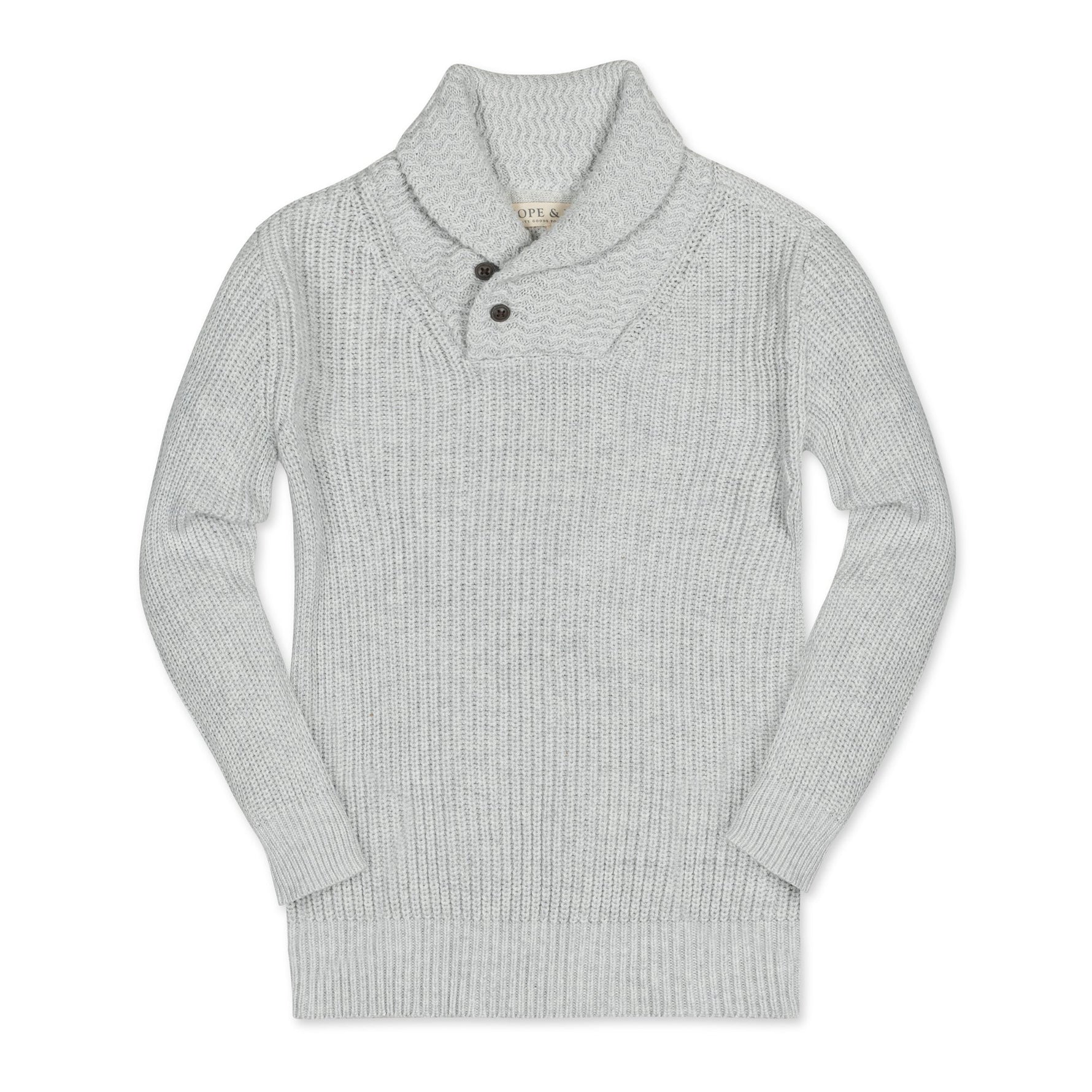 Our classic shawl collar sweater is elevated by a special herringbone stitch at the collar and a chunky cardigan texture. Crafted from our signature soft organic cotton, our sweater features a button closure in an easy pullover silhouette - an instant classic that can be worn on repeat and handed down time and again.