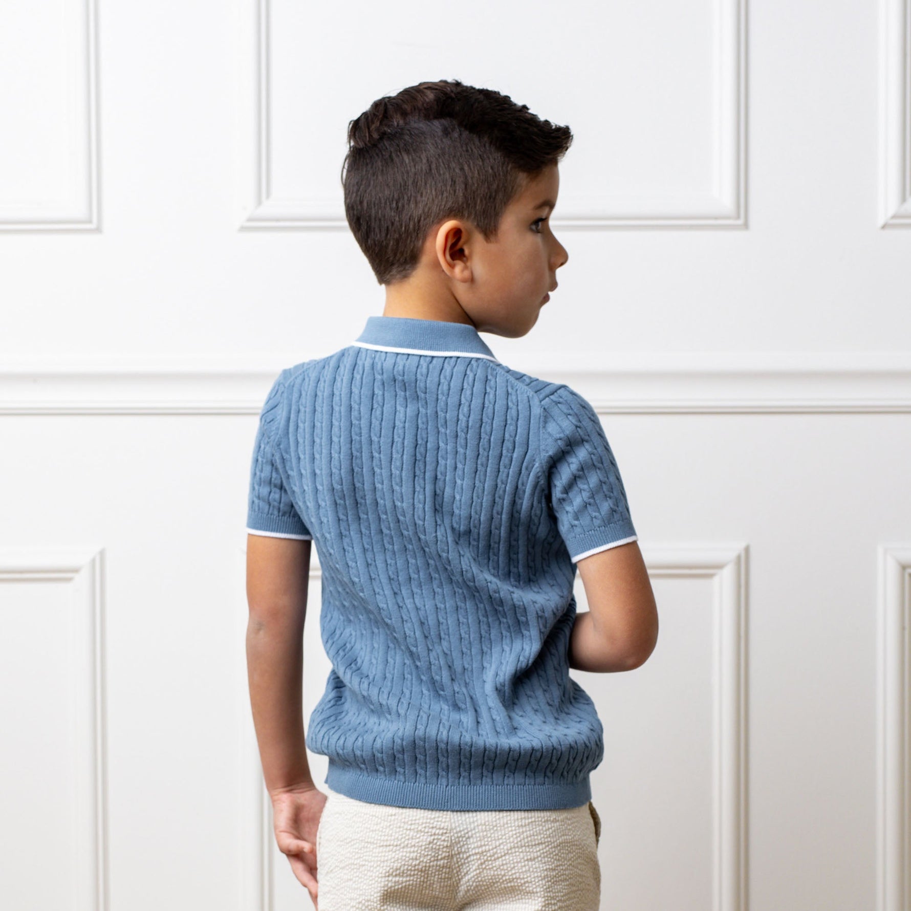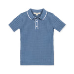 Our short sleeve sweater polo in soft organic cotton combines the polished look of a polo with the comfort of a sweater. Features an allover textured knit, matte button closure at the center front, and jersey stitch polo collar with contrast tipping. This handsome look is a sophisticated twist on a classic.