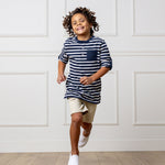 Our modern fit chino short will be the one your boy reaches for every day, on special occasions and weekend play dates alike. Features soft 100% organic cotton twill with a carbon-brushed finish and a hint of stretch, faux horn button, side pockets, back welt pockets, and an adjustable waistband for ultimate comfort and superior fit. These are sure to be worn, loved, and passed down again and again!