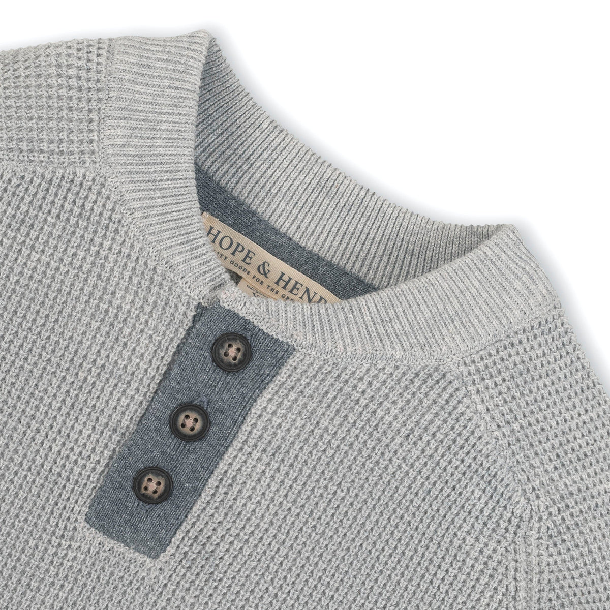 Our long sleeve sweater henley in soft organic cotton waffle knit combines the sporty look of a henley with the coziness of a sweater for the ultimate in comfort and style. Features faux suede elbow patches, button closure at the center front placket, and rib trim at the cuffs and collar. A sophisticated twist on a classic.