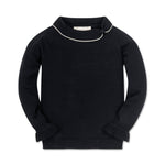 An everyday sweater with feminine flair that will have your girl looking polished in a snap! Our adorable pullover sweater in soft organic cotton is adorned with a sweet asymmetrical rounded collar with contrast tipping. Features ruffled cuffs for a fun and girly look. Pairs perfectly with our collection of organic cotton skirts and leggings.