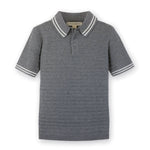 Our short sleeve sweater polo in soft organic cotton combines the polished look of a polo with the coziness of a sweater for the ultimate in comfort and style. Features an allover textured knit, matte button closure at the center front placket, and jersey stitch polo collar with contrast tipping. A sophisticated twist on a classic!