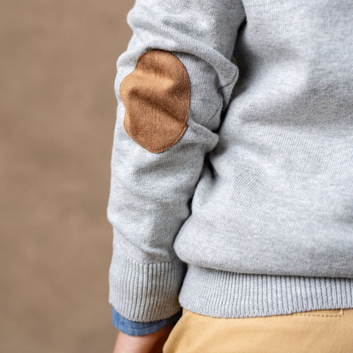 • Faux suede elbow patches.