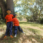 Straight-leg lined pants for cooler weather. Organic cotton twill plus cozy organic cotton jersey lining. Made for kids on the move with an elastic drawstring, reinforced knees, and extra long legs for growing kids. Designed to fit 2x longer.