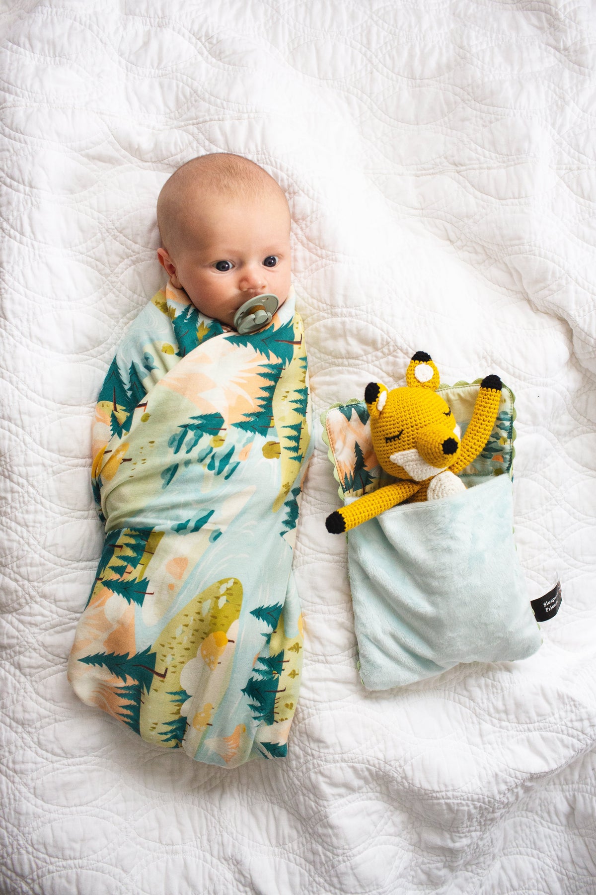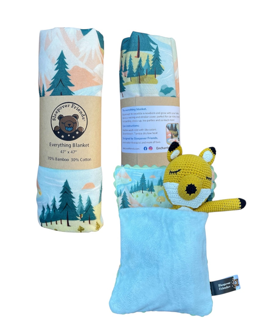 Enchanted River everything blanket with Fox in matching sleeping bag