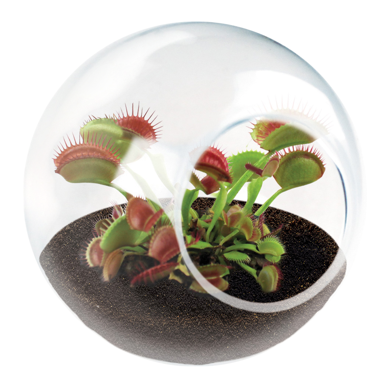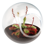 Grow your own tiny, self-contained eco system.  Each high-quality globe is handmade. The Flytraps will naturally conform to the container and stay small while growing in it. However, they can grow to full size if they are transplanted into progressively larger containers. Flytraps can produce tall flower stalks that reach up to 12 inches in height, but they typically do not eat insects while flowering. Flytraps can live for several years with proper care. Sundew plants have many unique features to aid them in survival. They have sticky leaves that work to trap insects, tentacle-like leaf hairs that move to ensnare prey, and deadly digestive juices that produce enzymes to break down the bodies of the insects the plant captures. Instructions included. Guaranteed to Grow! Must use distilled water – avoid tap water.