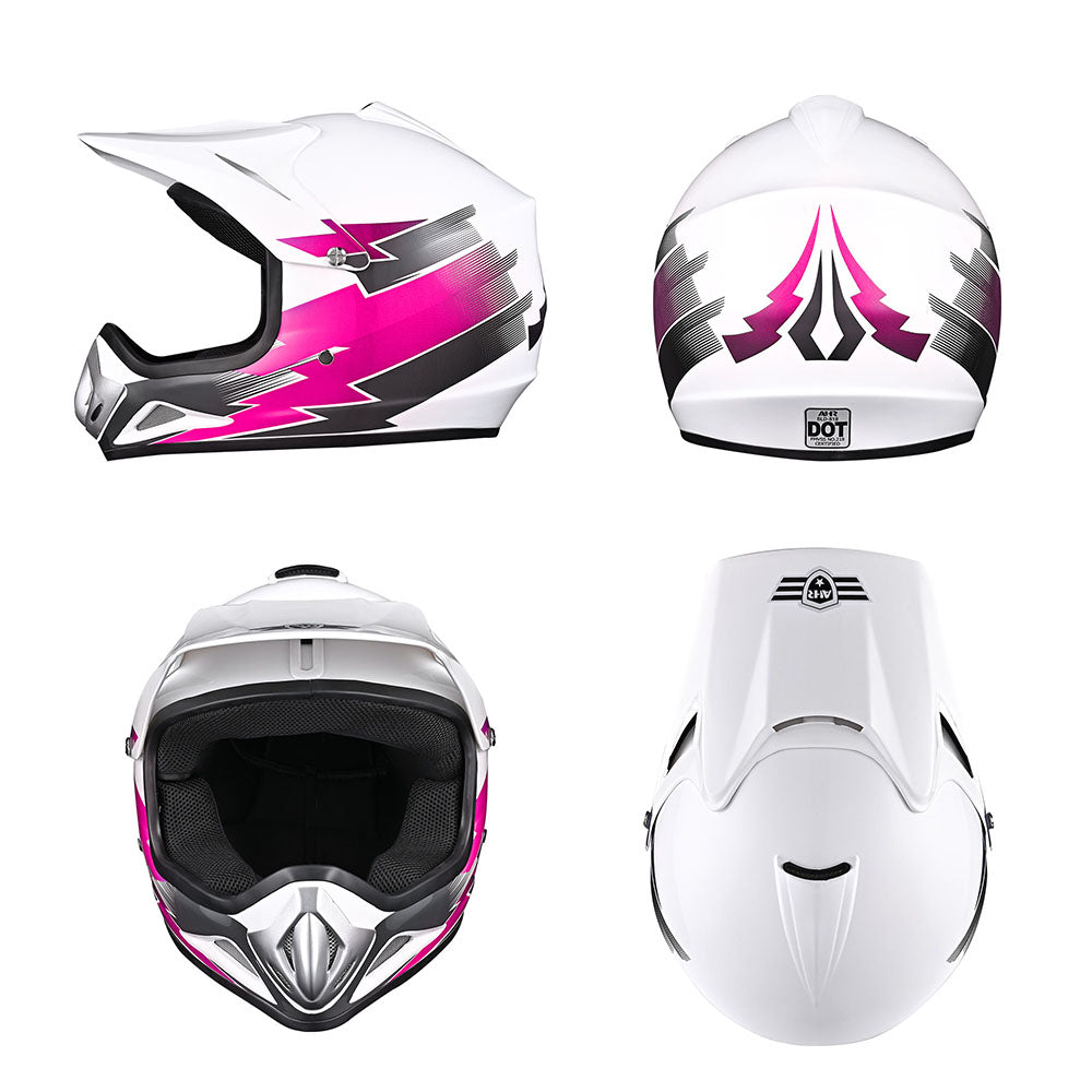 AHR H-VEN12 Pink Full Face Motorcycle Helmet with DOT approved offering good protection for your ride. Perfect for teenager who is fond of motocross, dirt bike, ATV and MX.