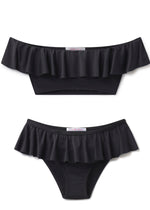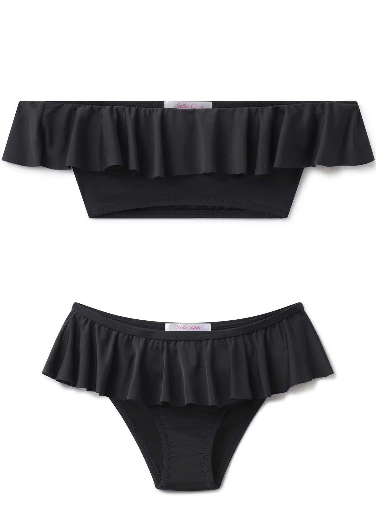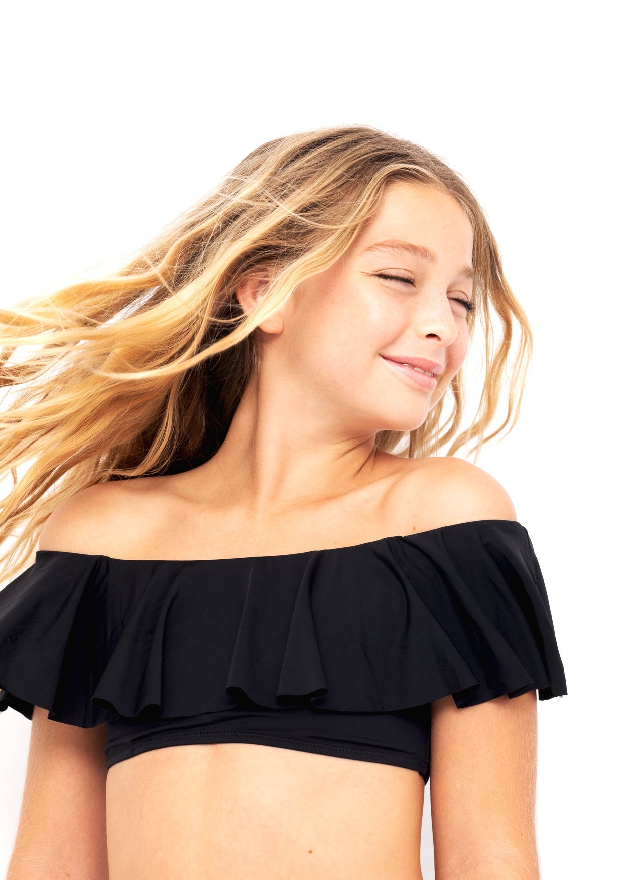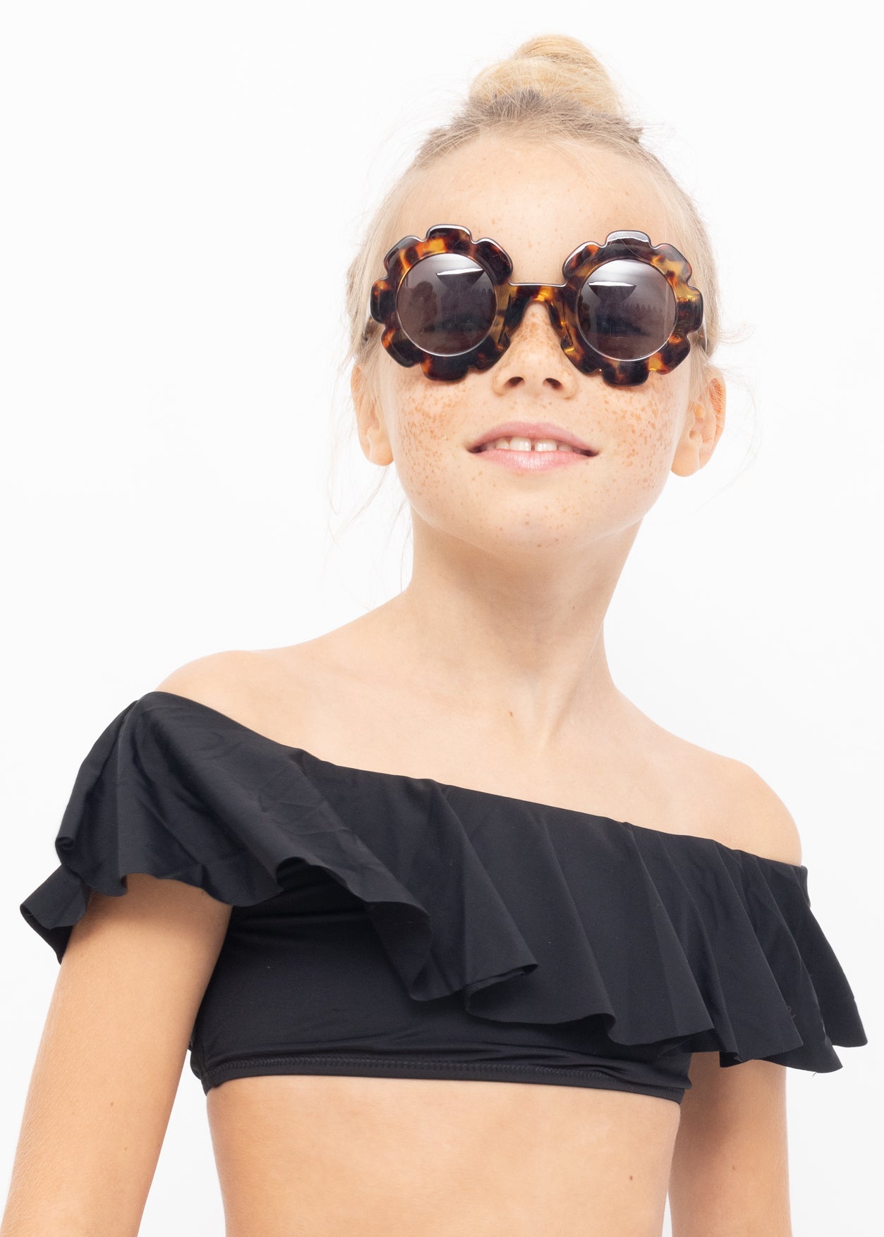 Black bikini for girls in buttery soft black fabric in a best selling cut with matching cover-ups looks great with these goggles as well as the tortoise sunglasses for girls.