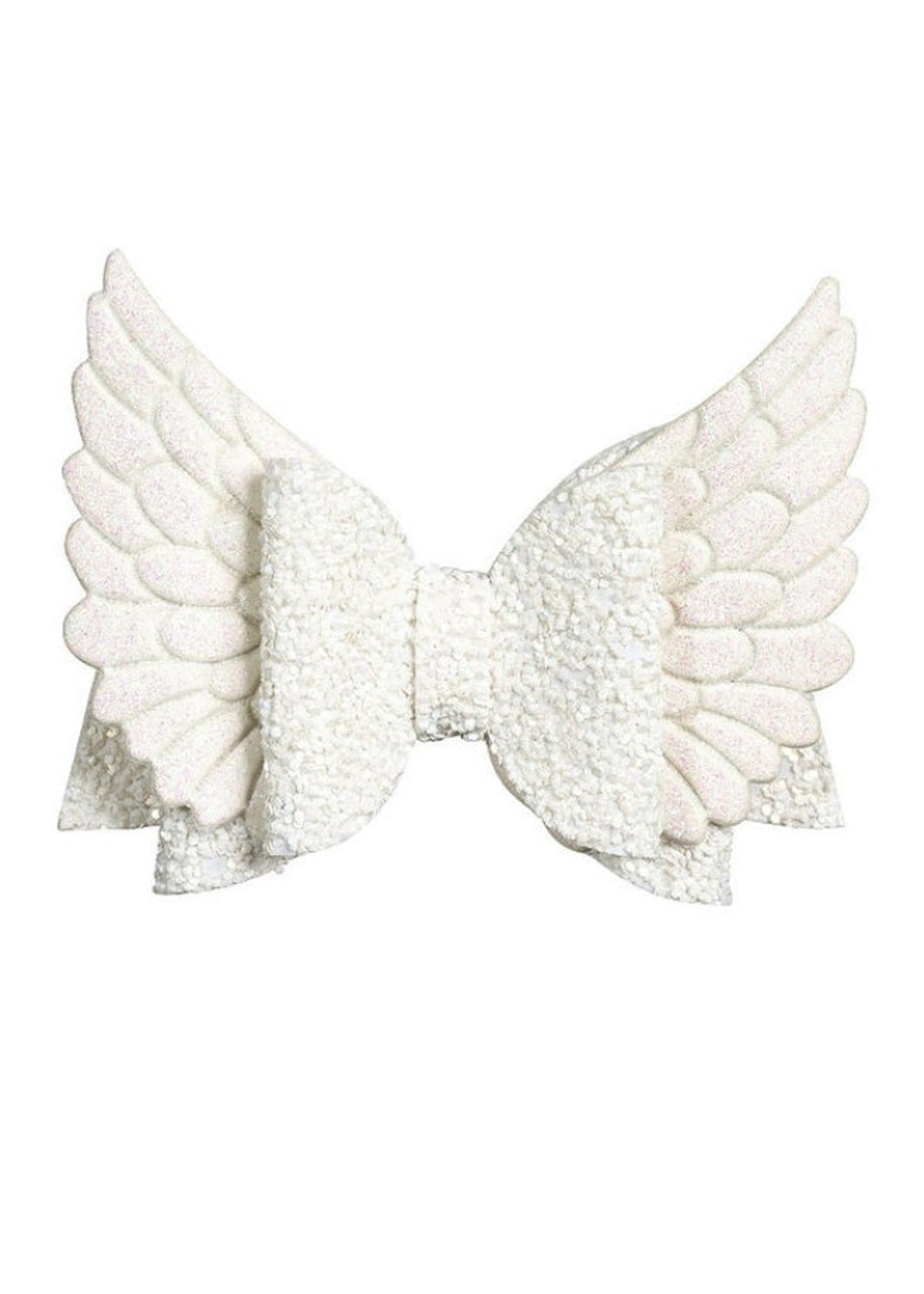 Dreamy and sparkly white wing hair clip measures 4 inch wide to match the dreamy dresses of the Stella Cove collection for a complete beach party look. This hair bow looks amazing with the white petal bikini for girls.