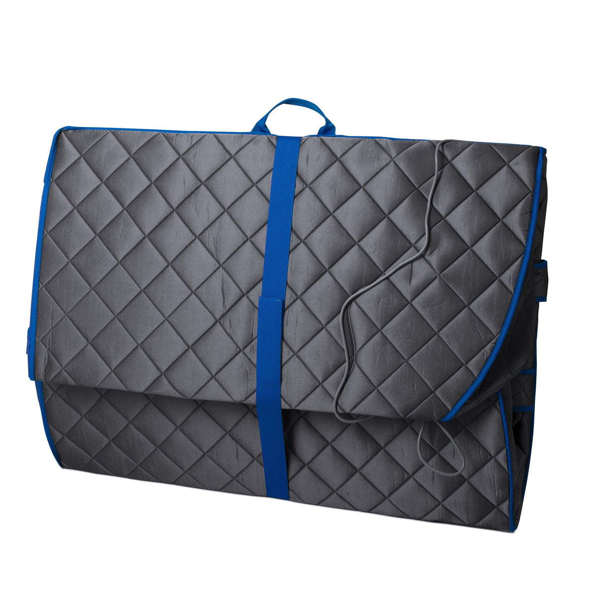 This unique high quality far infrared personal sauna has exclusive beneficial features which can now be used in the privacy of your home, apartment, or any living area without taking up space. Includes an additional pocket where you can easily access your smart-phone, magazine, book or even the TV remote while you are inside the sauna. The larger size (32" W x 33.5" D x 41" H) is perfect for those who need a little extra room, while still small enough to be stored when not in use. It only takes a couple minutes to unfold and setup.