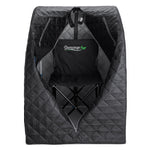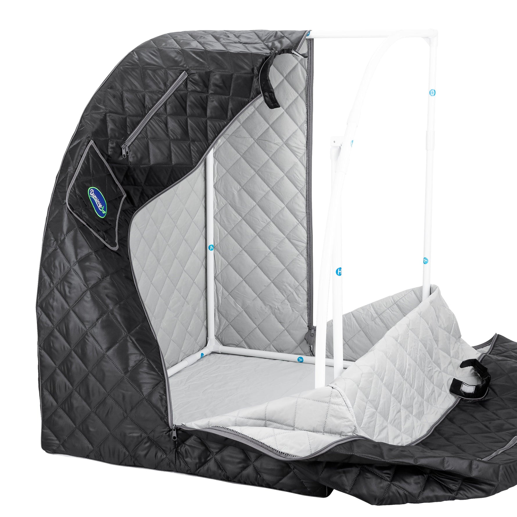 Including a single pocket on the front which can be utilized to hold your phone, tablet, TV remote or even a small book. Two zippered openings for your hands allows you to quickly access the front pockets while inside the sauna. Designed to deliver a high quality experience while using tough materials, which will allow you to use it for years to come. With its satisfying design, your head and hands can extend out for reading, watching TV, or listening to music.
