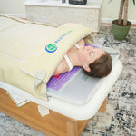 The 360 Wrap Set combines the therapeutic power of two mats to create a 360° full-body sauna blanket experience. With 12 preprogrammed PEMF functions and an intuitive LCD controller, it offers full control over intensity, frequency, duration, and wave type, while the memory function ensures a personalized therapy experience.