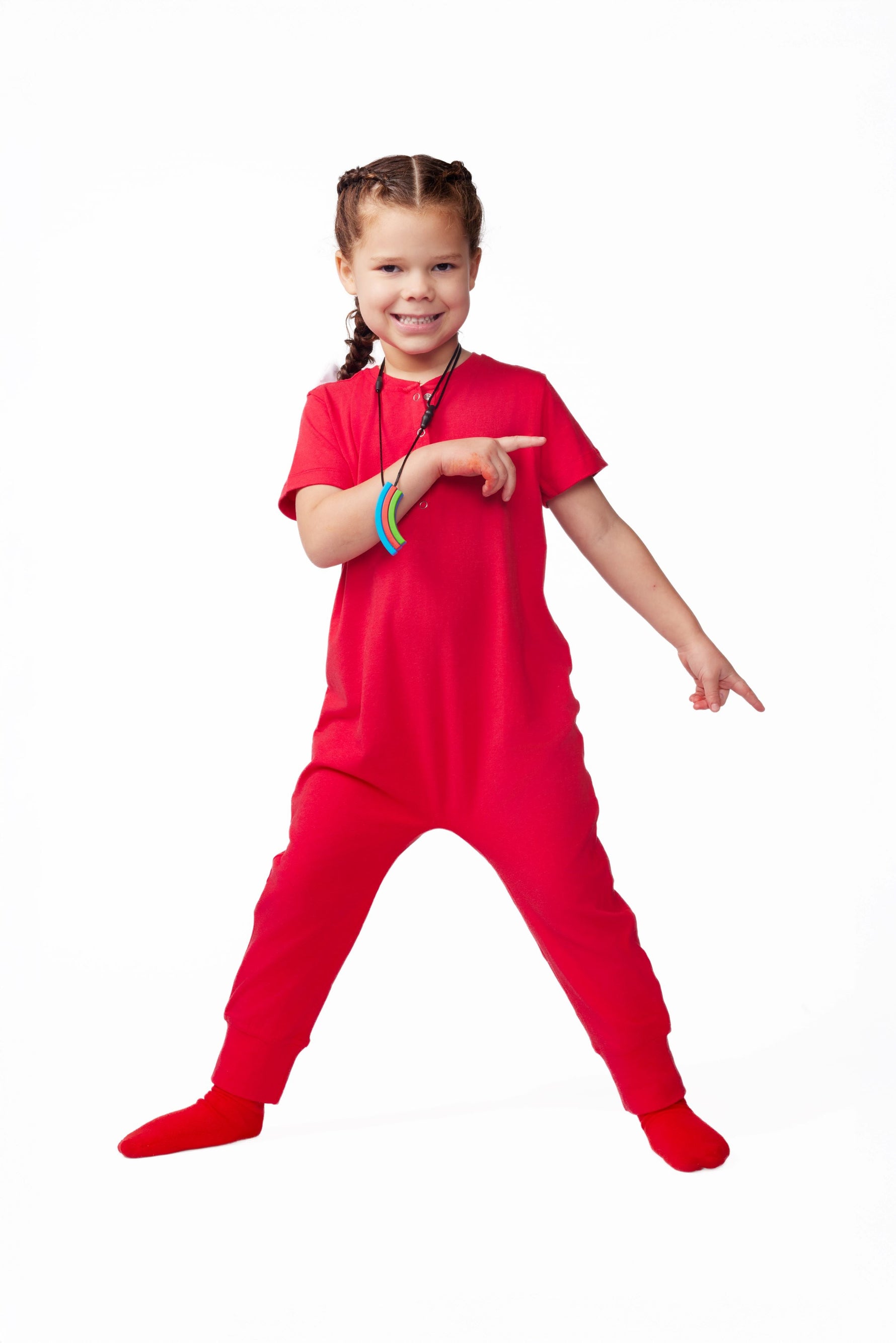 Ultimate Comfort Playsuit w Chewy Sensory Bracelet-RED