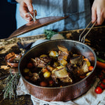 Complete with a compatible lid, our hand hammered Copper Sauté Pan will make sautéing anything on low heat truly enjoyable and effortless. We have blended the best of traditional high-quality copper cookware improved with our patented modern reworking of the handle.