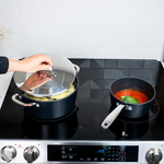 Our diamond-reinforced ceramic nonstick releases food instantly and rinses spotless—so you can skip the soak.