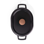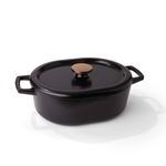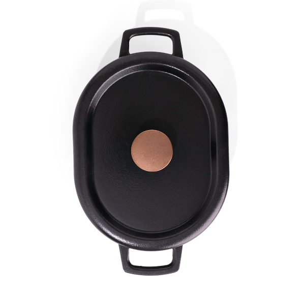 The eye-catching 6 Qt. round Dutch oven from the Alva Nori collection. This Dutch oven is made of indestructible cast iron that has great heat conductivity and retention. The interior and exterior is coated with three layers of scratch-resistant enamel for immediate use. Dressed in beautiful bronze knobs to complement its deep black color.