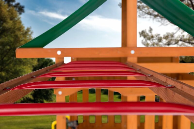 • Heavy duty, 21.5” metal monkey bars provide a safe, no-sweat playset experience with sturdy construction and simple installation