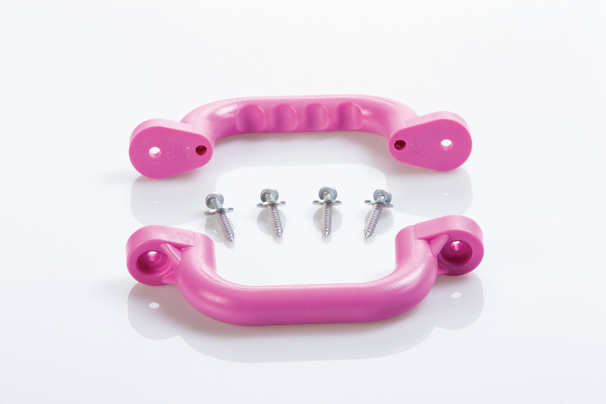 Plastic Safety Handles from Creative Cedar Designs can give you more peace of mind about your play set! Install play set safety handles almost anywhere on most backyard swingsets, creating a stable climbing hold wherever your kids need support. Ensure your child’s play-safe swing set experience with this set of two 9” playset handles, do-it-yourself hardware & illustrated directions!