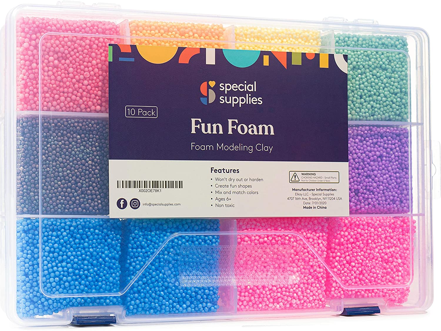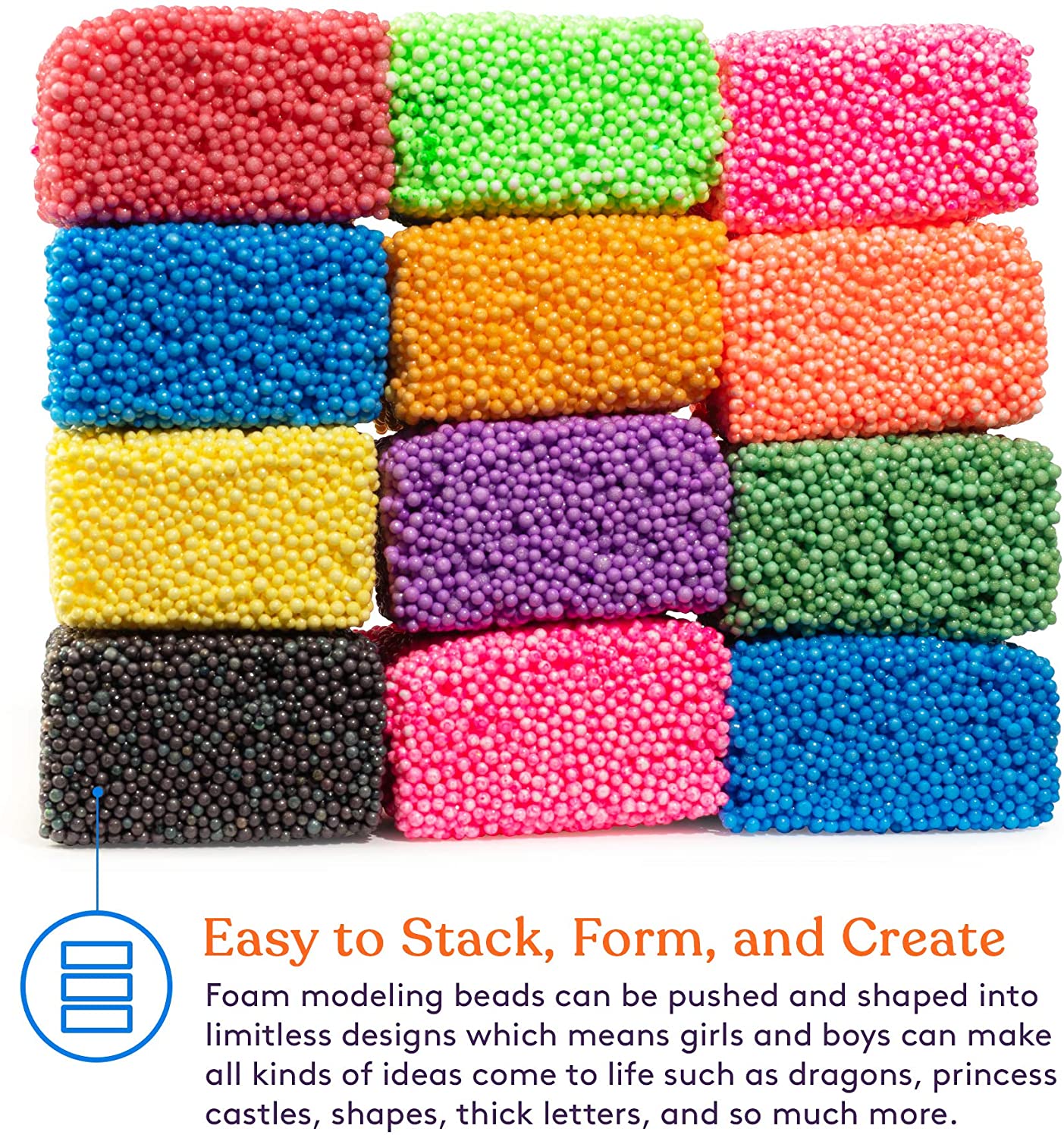 FUN FOAM Modeling Foam Beads Play Kit (10 Blocks) - Reusable Container