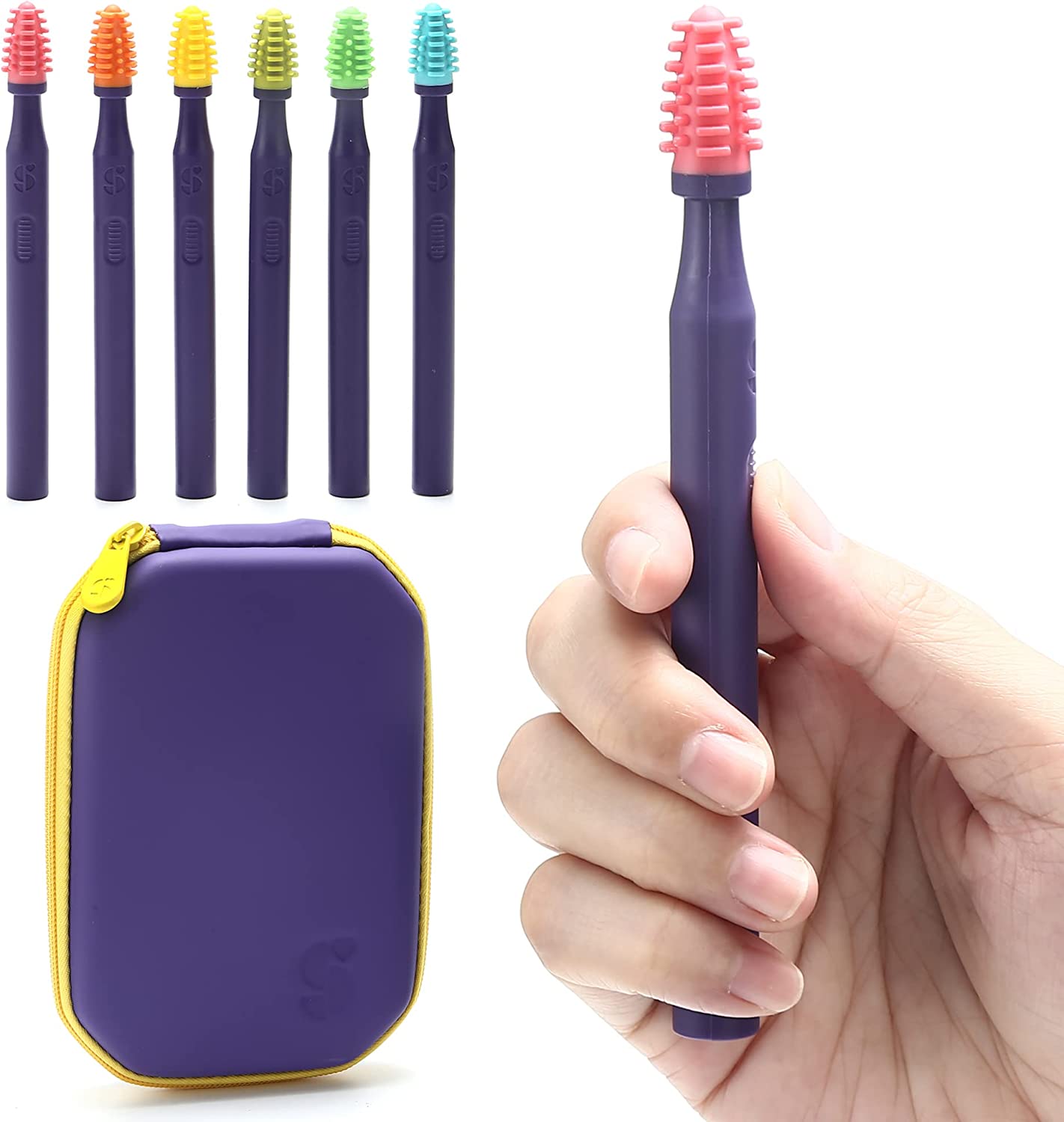 Sensory Mouth Brushes and Oral Stimulation Tools for Kids and Adults, 6 Pack, with Soft Textured Heads, Travel Case Included