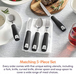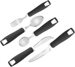 Set of 5 Black Adaptive Utensils - Stainless Steel Knife, Rocker Knife, Fork, Soup Spoon, Dinner Spoon