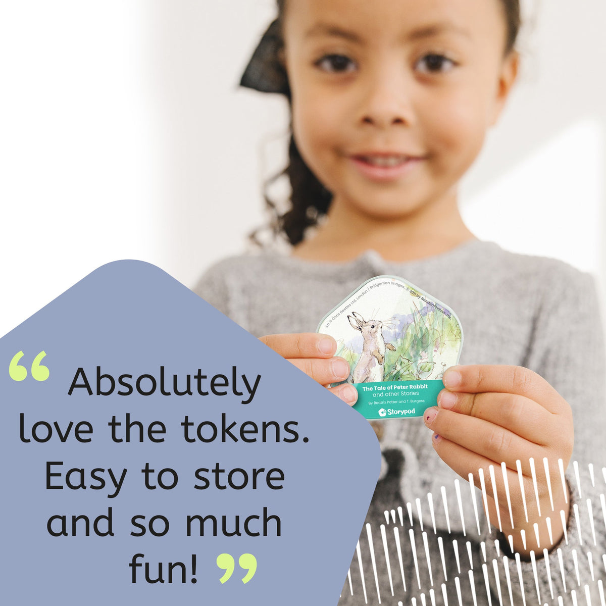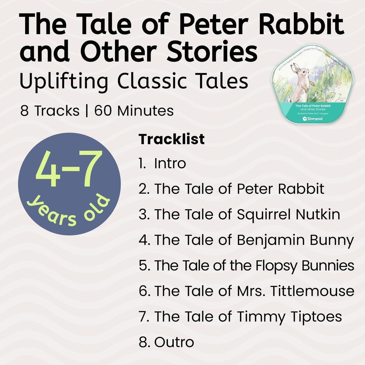 Unlock the magical world of Beatrix Potter with the classic, heartwarming stories of Peter Rabbit. In partnership with Penguin Random House, Storypod brings this collection of six Peter Rabbit tales to life through a charming audio experience that is sure to delight. Join Flopsy, Mopsy, Peter Rabbit, and other woodland friends as they traverse the forest on quaint adventures while learning valuable lessons such as setting boundaries, minding your parents, and taking responsibility.