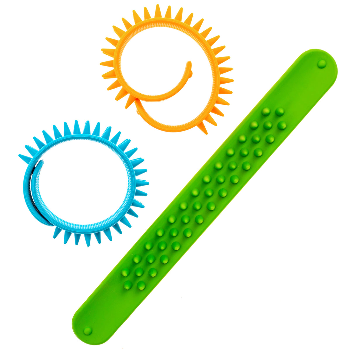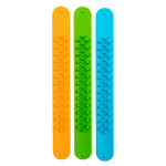 These wristbands are made of nontoxic silicone material, BPA free, durable and long-lasting. 3-Pack can be used on hands, water bottle, key chain, backpack and other places. Each bracelet is 8" long. Suitable for ages 3+