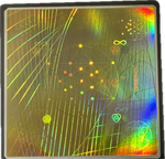 This high-vibrational 6x6 multilayer laminated hologram features infused 18k gold, sacred geometry, and intentional affirmations—designed to naturally extend the shelf life of all food and drinks by weeks, while also restructuring water in your food source.