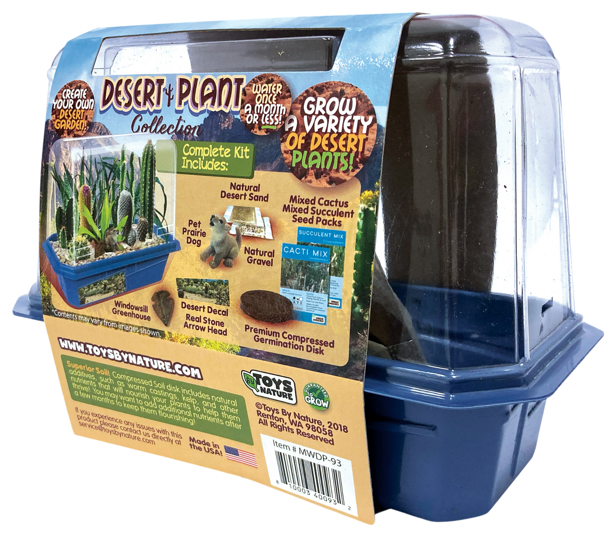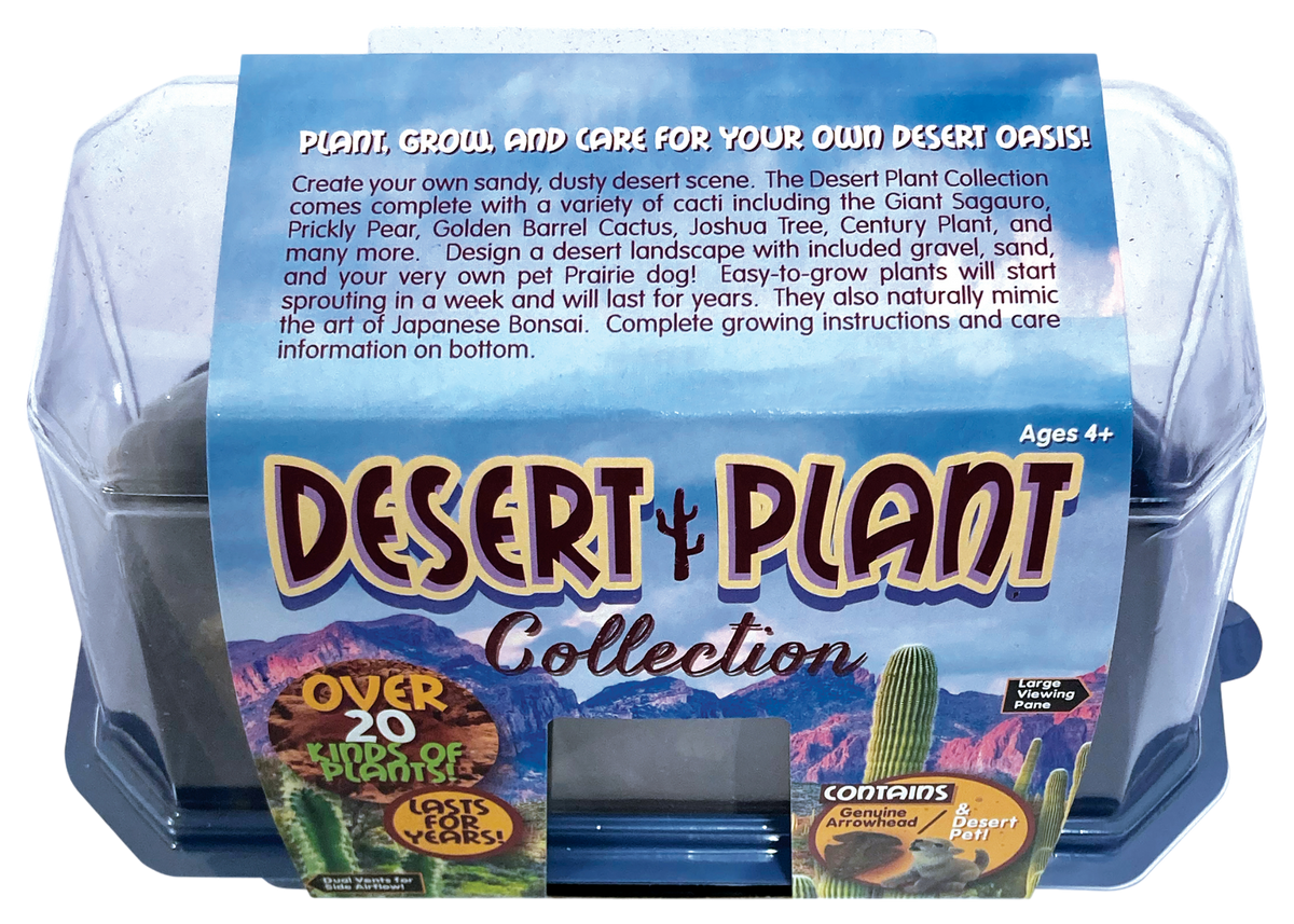 Cacti are actually subset of the larger Succulent grouping. The deluxe mix contains well known succulents such as Aloe, Ponytail Palm, the Century Plant, and Joshua Tree. They are characterized by their ability to store water in hot, sunny climates. These plants are also extremely useful to humans and wildlife alike! What is really interesting about these plants is that they naturally “bonsai.” This means that they will only grow as big as the environment they are in will let them, whether it is a pot, a crack in a stone, or out in the wide open. As a result, the same plants can appear small or grow to amazing heights simply depending upon where they are growing!