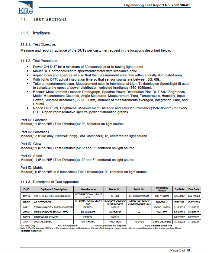 • Spectrum: 630nm (red) & 850nm (NIR)
