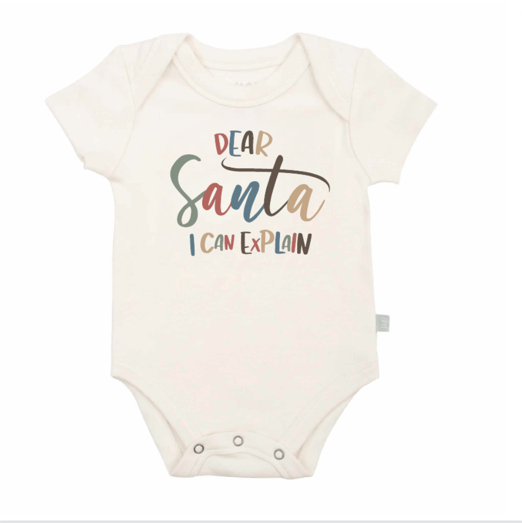 Santa, I can explain.  Adorable babies make any holiday merrier, even when they have some explaining to do! This is also a perfect design for holiday-card photo opps and any other memory-making merriment. It will keep your little one comfy and festive all season long (and it makes a great gift too!). Made from buttery-soft organic cotton, our bodysuits feature easy-snap fasteners for quick access when changing or bathing.
