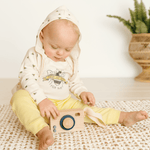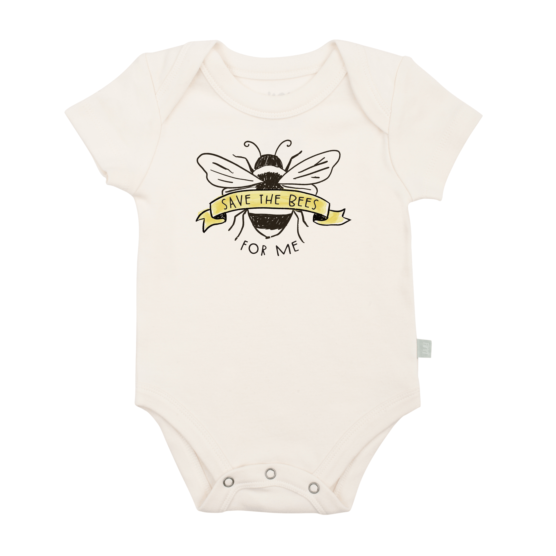 Your little one will create a buzz in this adorable new bodysuit! It features our "Save the Bees For Me" crest design. And, made from buttery-soft organic cotton, it also includes easy-snap fasteners for quick access when changing or bathing.