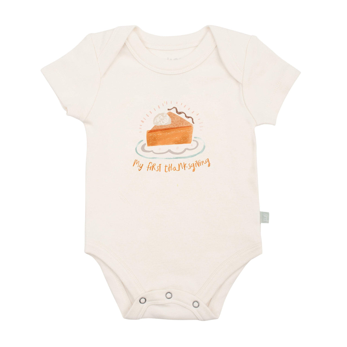 If your favorite part of Thanksgiving is the pie then this Thanksgiving baby bodysuit  is for you. Simple and comfortable is best, especially for babies. Our adorable bodysuit is perfect for all sizes and activity levels, from your little one's first day in the world to their first birthday celebration. Made from buttery-soft organic cotton, it features easy-snap fasteners for quick access when changing or bathing.