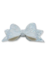 light blue sequin and lace hair bow on metal clip to match Stella Cove dresses and cover ups for a complete beach party look. This blue glittery bow looks great with the Stella Cove blue and silver swimsuit for girls.