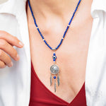 Designed with Thai Silver 925, this modern take on a classic necklace adds a rustic artisan touch without jeopardizing its quality. The Dream Catcher pendant features three feathers representing your past, present, and future. From beginning to end and everything in between, your dream catcher knows the desires of your heart and gives you the power and protection to pursue them confidently. Adorned with the ancient nazar, the Evil Eye, any harm, envy, or negativity headed your way will be destroyed in its tracks. Some will witness your comeback and be intimidated by your growth, but the Evil Eye will ensure their energy doesn’t touch yours.