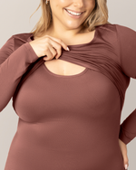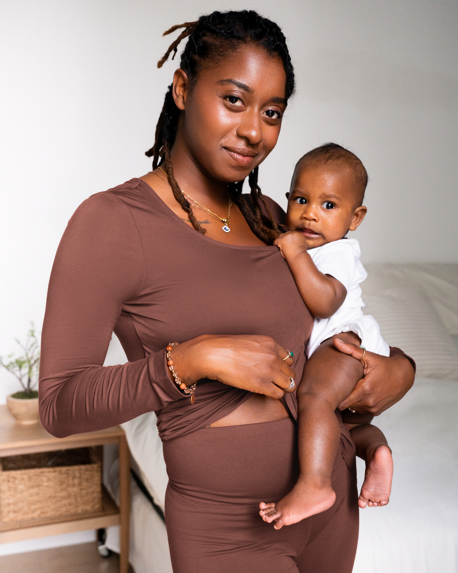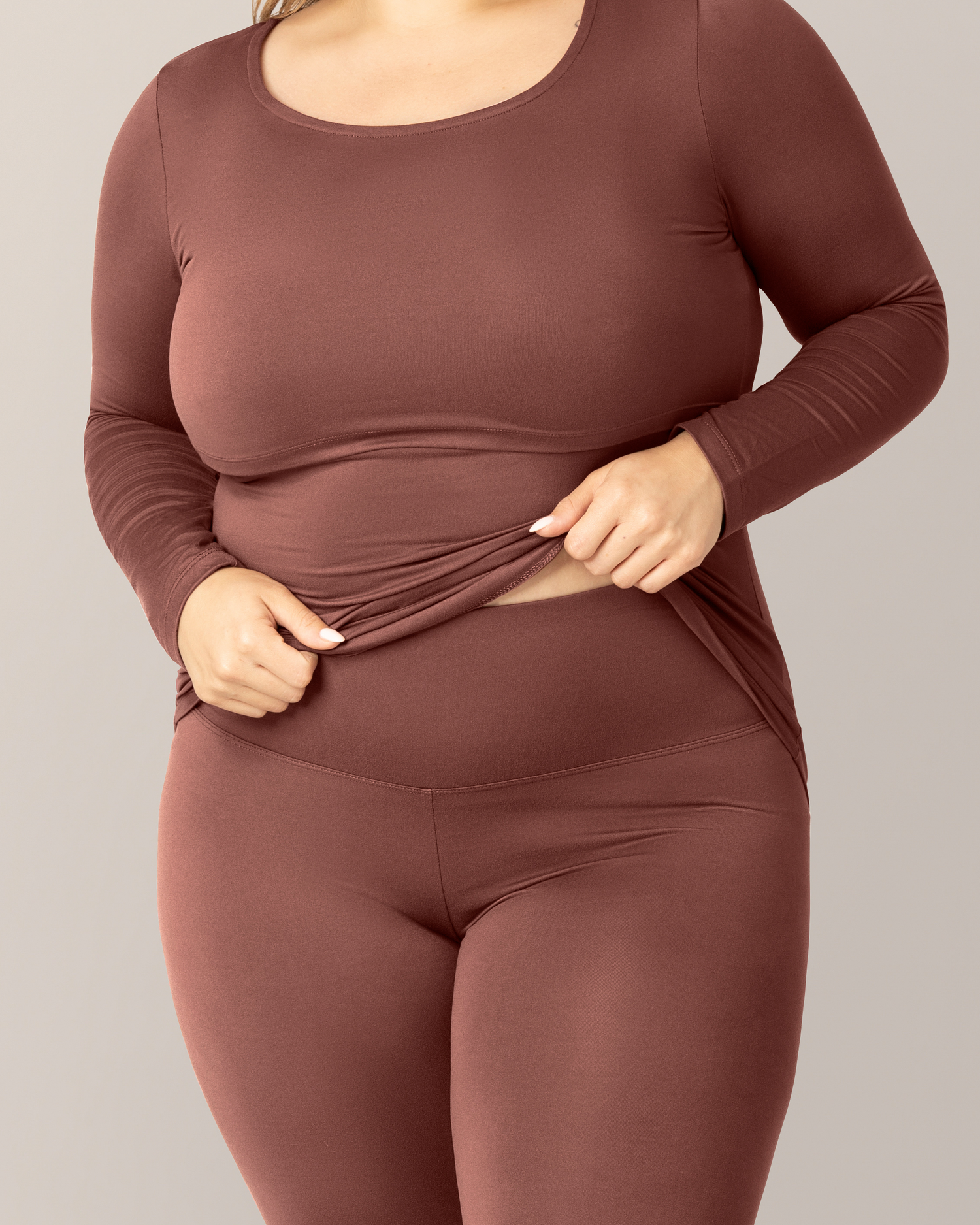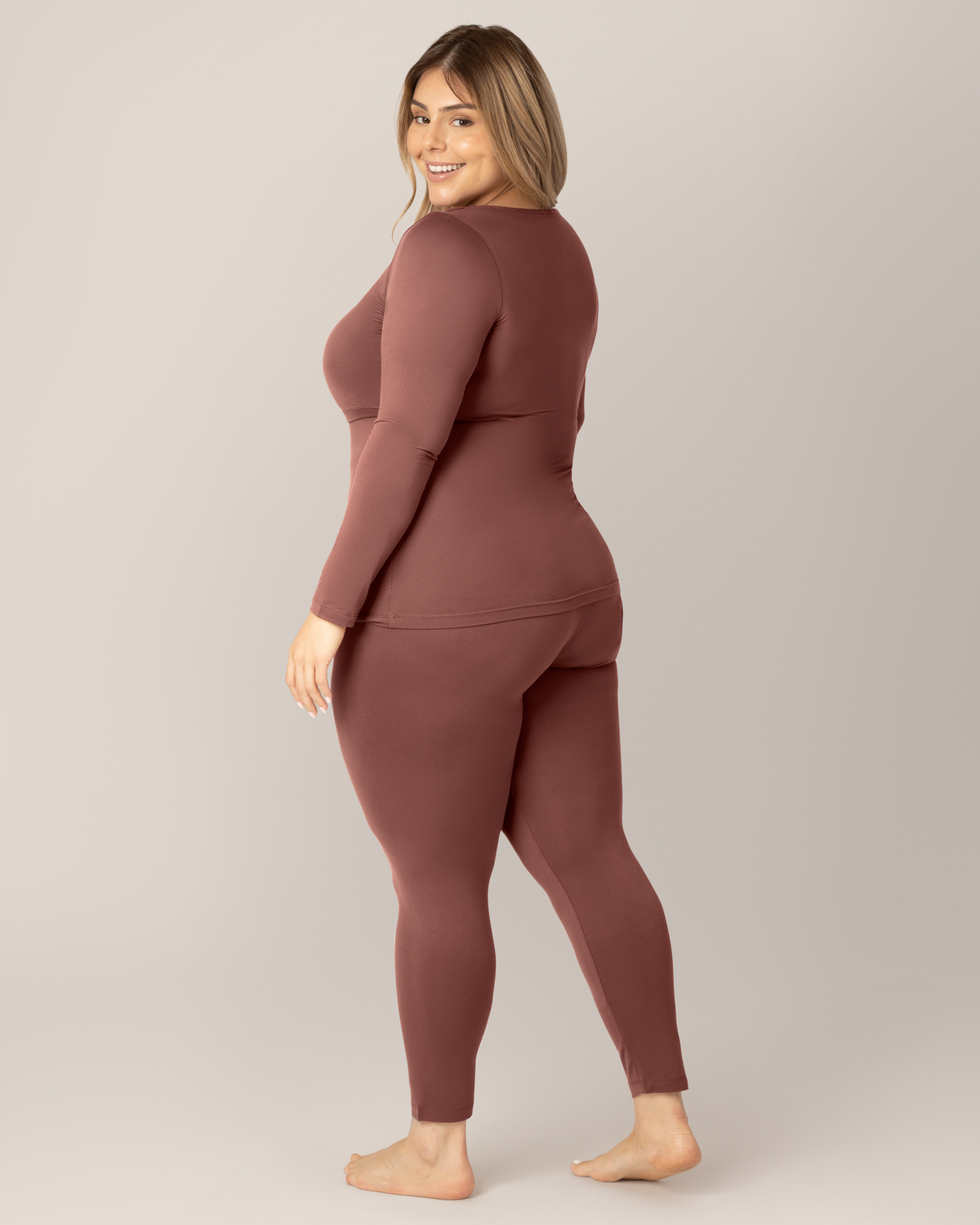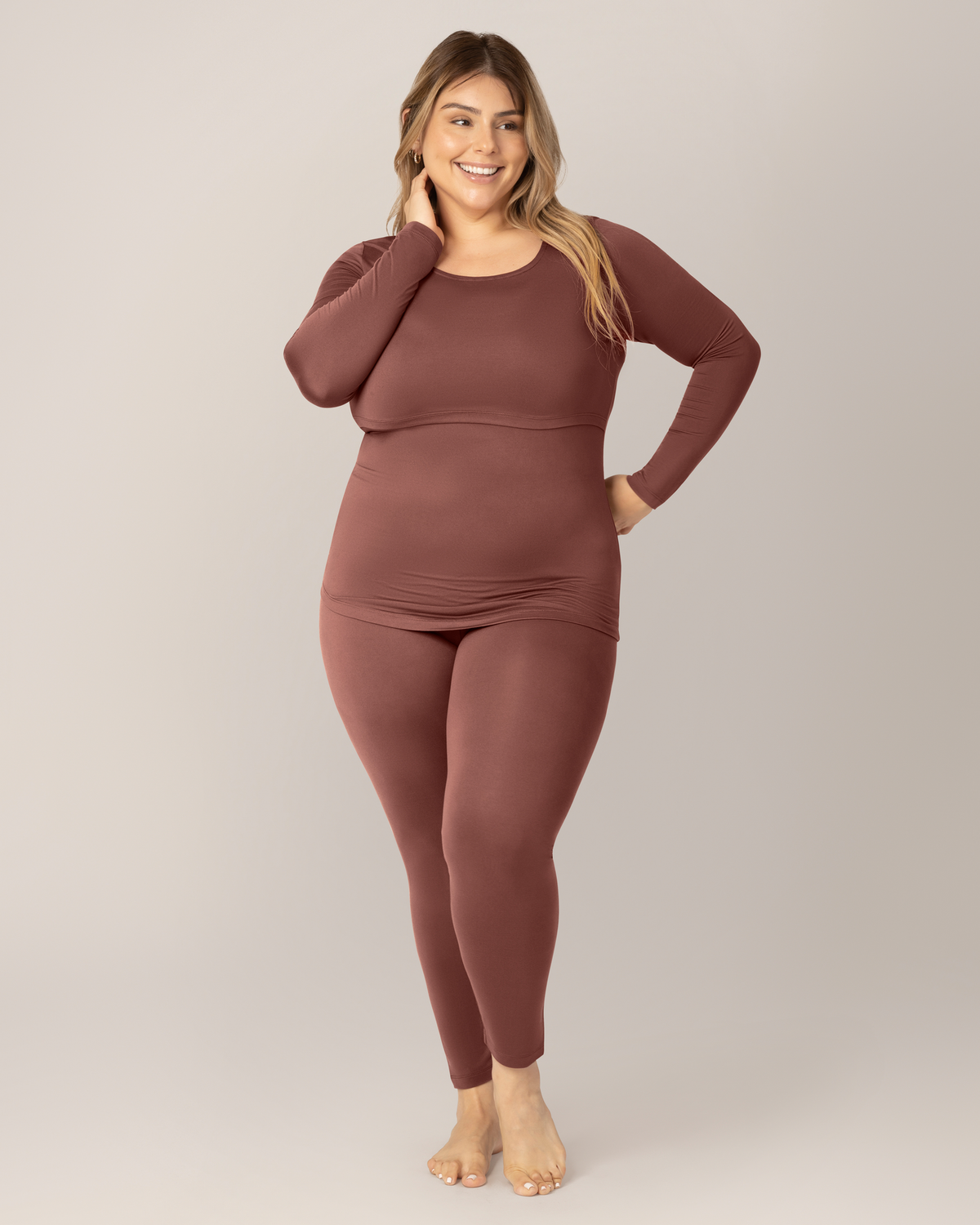 The nursing pajamas or “long janes” of your dreams. The snug silhouette comfortably fits under other clothes to keep you warm, and the nursing panel makes it easy to feed your little one at home or on the go.