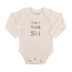 For the ski enthusiast.  Craw. walk. ski. Simple and comfortable is best, especially for babies. Our adorable bodysuit is perfect for all sizes and activity levels, from your little one's first day in the world to their first birthday celebration. Made from buttery-soft organic cotton, it features easy-snap fasteners for quick access when changing or bathing.