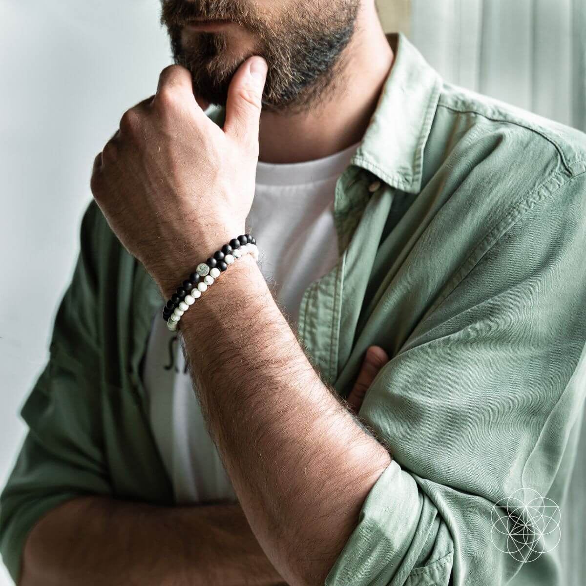 For those seeking a fashionable accessory that symbolizes balance and calm, this 2-in-1 bracelet set contains 2 powerful crystals - Shungite and Howlite. Shungite is believed to symbolize stability and strength, offering a sense of peaceful energy. It's seen as a representation of cleansing negativity from your surroundings.