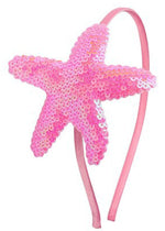 A pink shimmery sequin star fish head band to complete the Stella Cove mermaid look of beachwear and looks great with the neon pink swimsuit for girls. Add this mermaid inspired headband to take a swimsuit from pool to party.