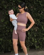 The search for the perfect bike shorts is over. Made from our beloved bamboo fabric, they pair great with all your favorite bras, baggy pullovers, button-downs, and everything in between. These postpartum & maternity bike shorts are double-layered for full coverage but still super breathable. We love them for lounging or running errands, and their incredible stretch works with your changing body.